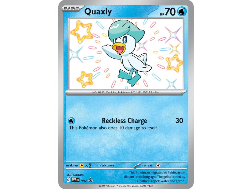 Tato Pokémon TCG kusová karta Quaxly je SV Black Star Promo. Tato karta má regulační značku G.