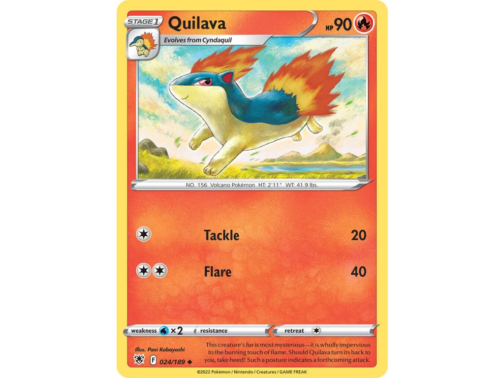 Tato Pokémon TCG kusová karta Quilava je z edice Astral Radiance. Tato karta je Uncommon rarity a má regulační značku F.