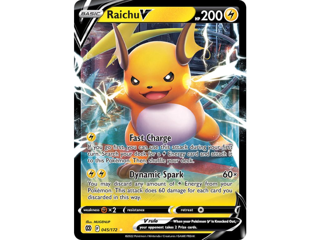 Tato Pokémon TCG kusová karta Raichu V je z edice Brilliant Stars. Tato karta je Ultra Rare rarity a má regulační značku F.