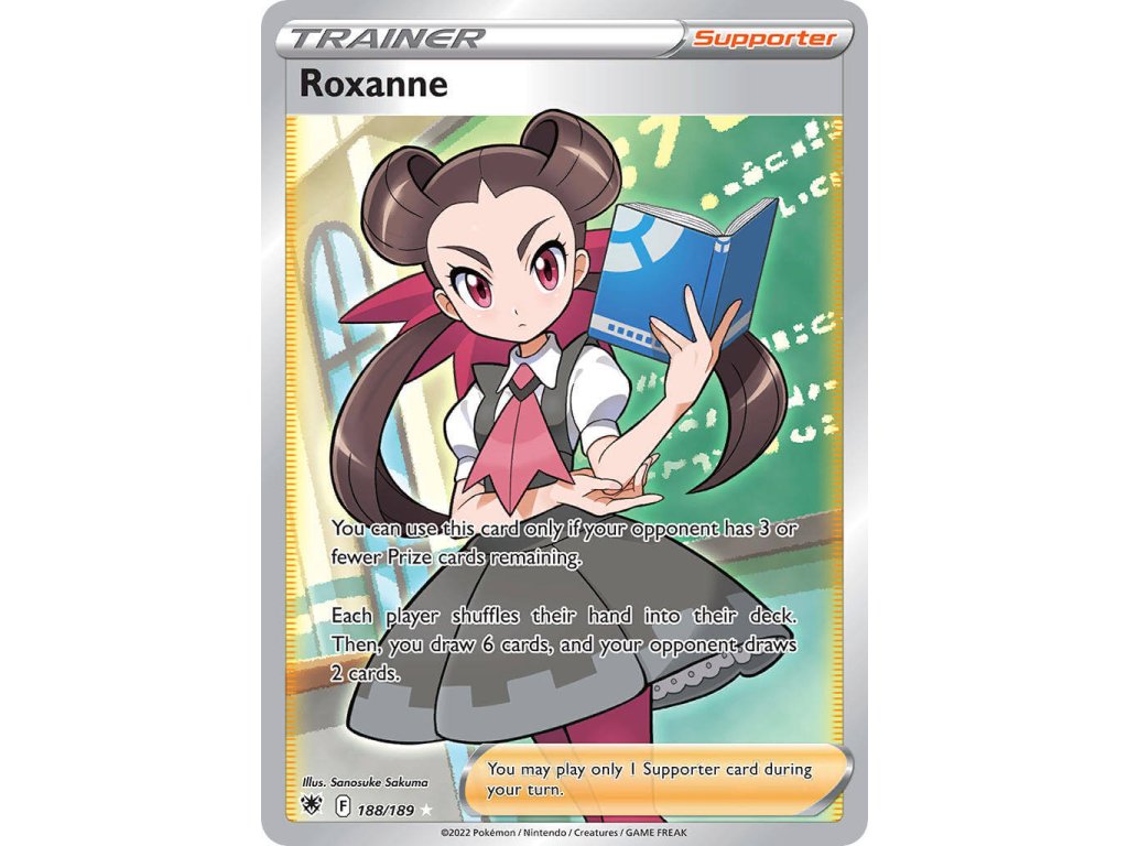 Tato Pokémon TCG kusová karta Roxanne je z edice Astral Radiance. Tato karta je Ultra Rare rarity a má regulační značku F.