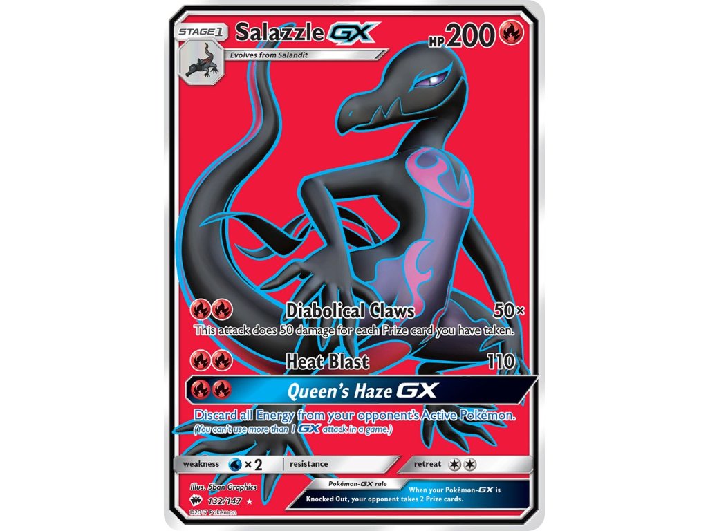 Tato Pokémon TCG kusová karta Salazzle GX je z edice Burning Shadows. Tato karta je Ultra Rare rarity.