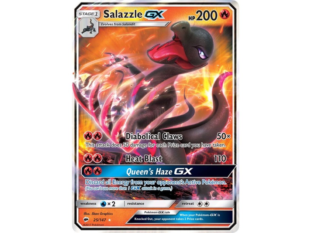 Tato Pokémon TCG kusová karta Salazzle GX je z edice Burning Shadows. Tato karta je Ultra Rare rarity.