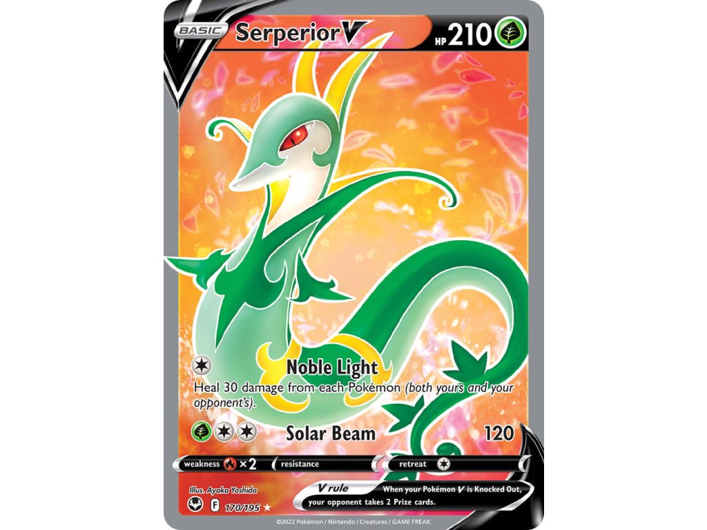 Tato Pokémon TCG kusová karta Serperior V je z edice Silver Tempest. Tato karta je Ultra Rare rarity a má regulační značku F.