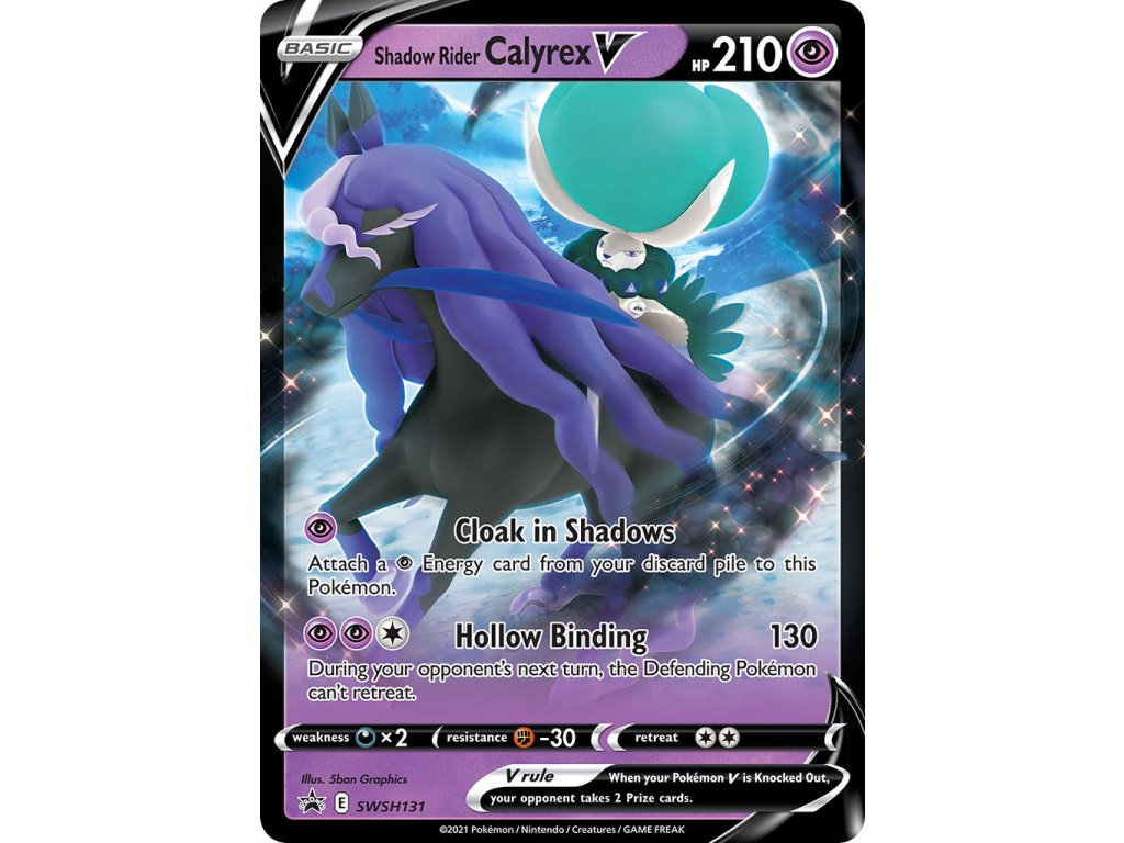 Tato Pokémon TCG kusová karta Shadow Rider Calyrex V je SWSH Black Star Promo. Tato karta je Promo rarity má regulační značku E.