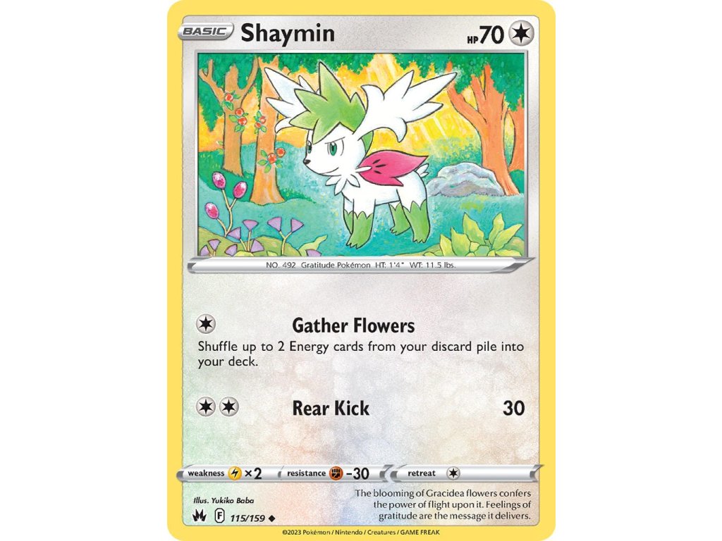 Tato Pokémon TCG kusová karta Shaymin je z edice Crown Zenith. Tato karta je Uncommon rarity a má regulační značku F.