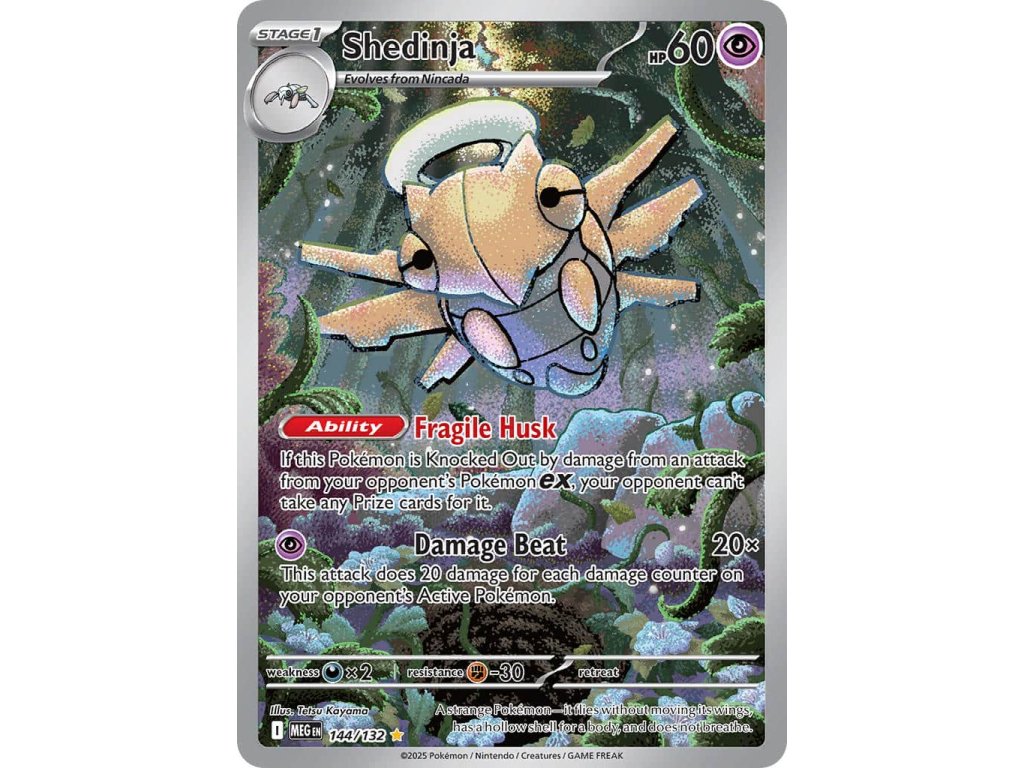 Tato Pokémon TCG kusová karta Shedinja je z edice Mega Evolution. Tato karta je Illustration Rare rarity a má regulační značku I.