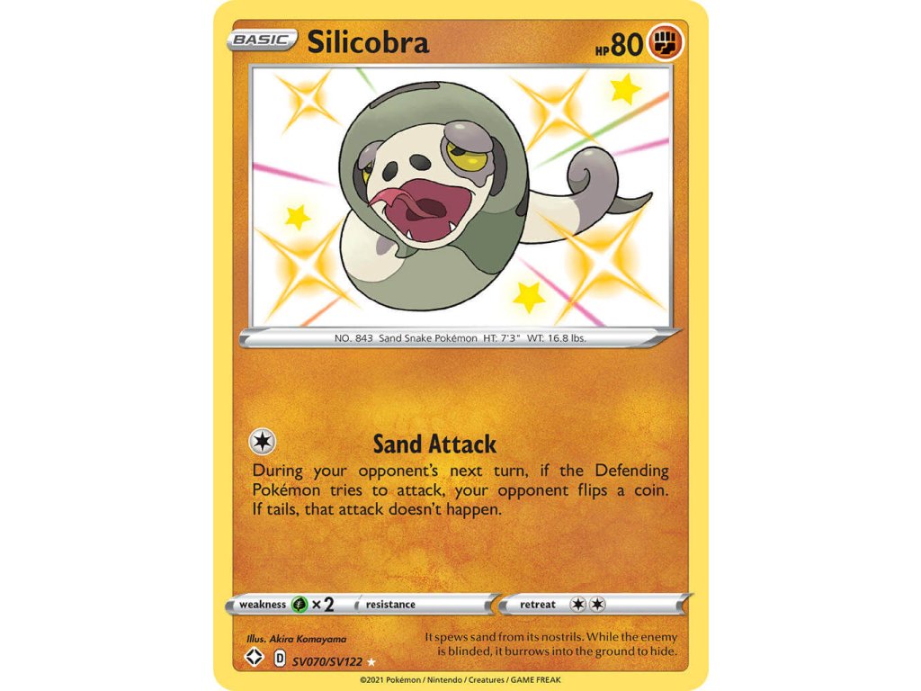 Tato Pokémon TCG kusová karta Silicobra je z edice Shining Fates. Tato karta je Shiny Rare rarity a má regulační značku D.