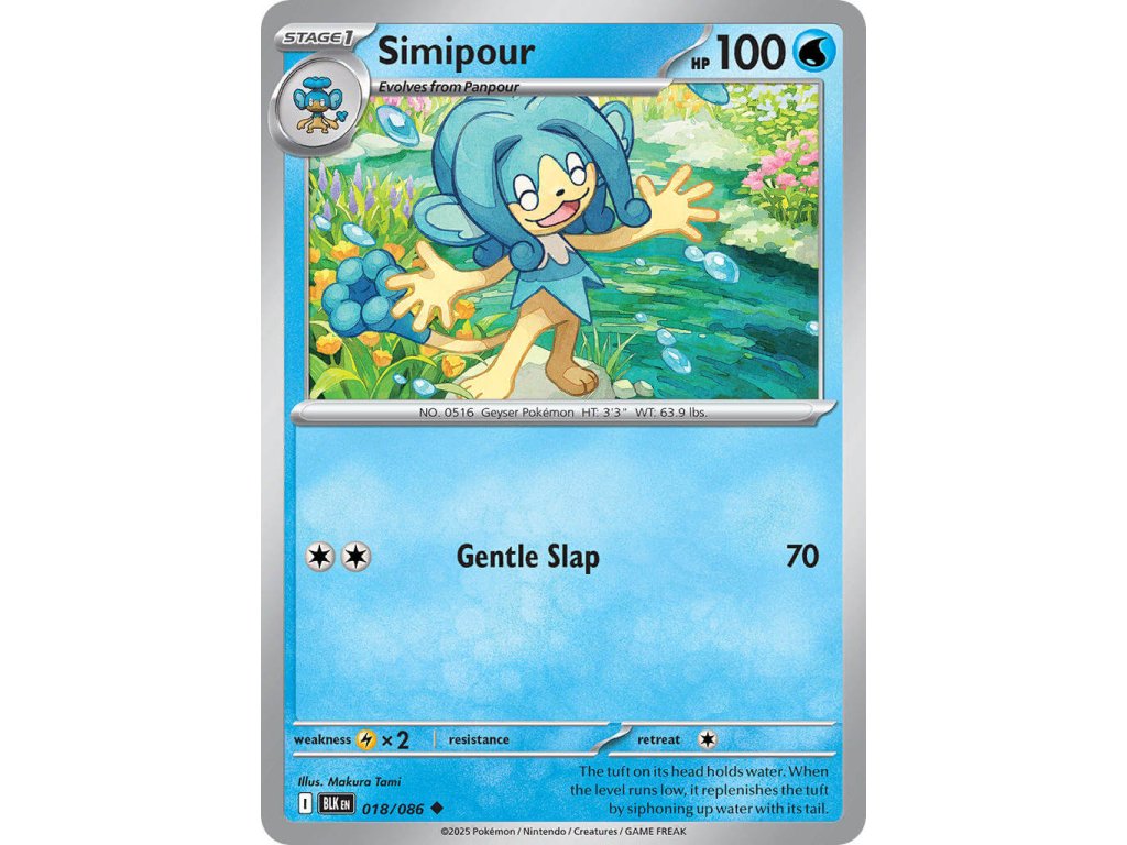 Tato Pokémon TCG kusová karta Simipour je z edice Black Bolt. Tato karta je Uncommon rarity a má regulační značku I.