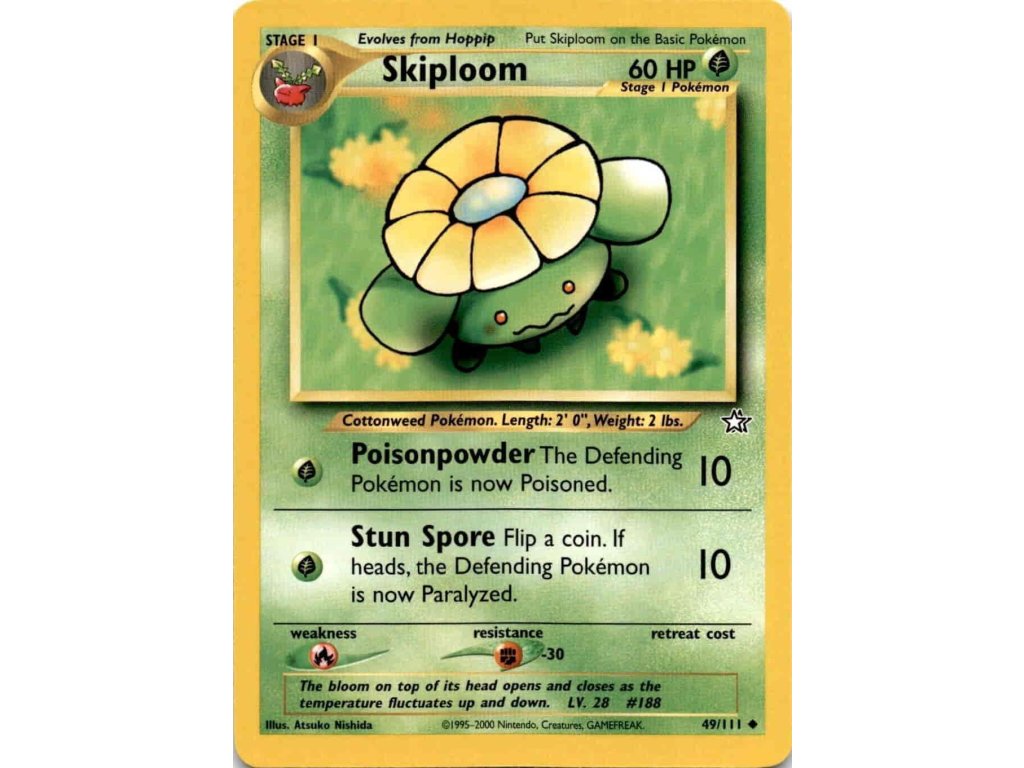 Tato Pokémon TCG kusová karta Skiploom je z edice Neo Genesis. Tato karta je Uncommon rarity.