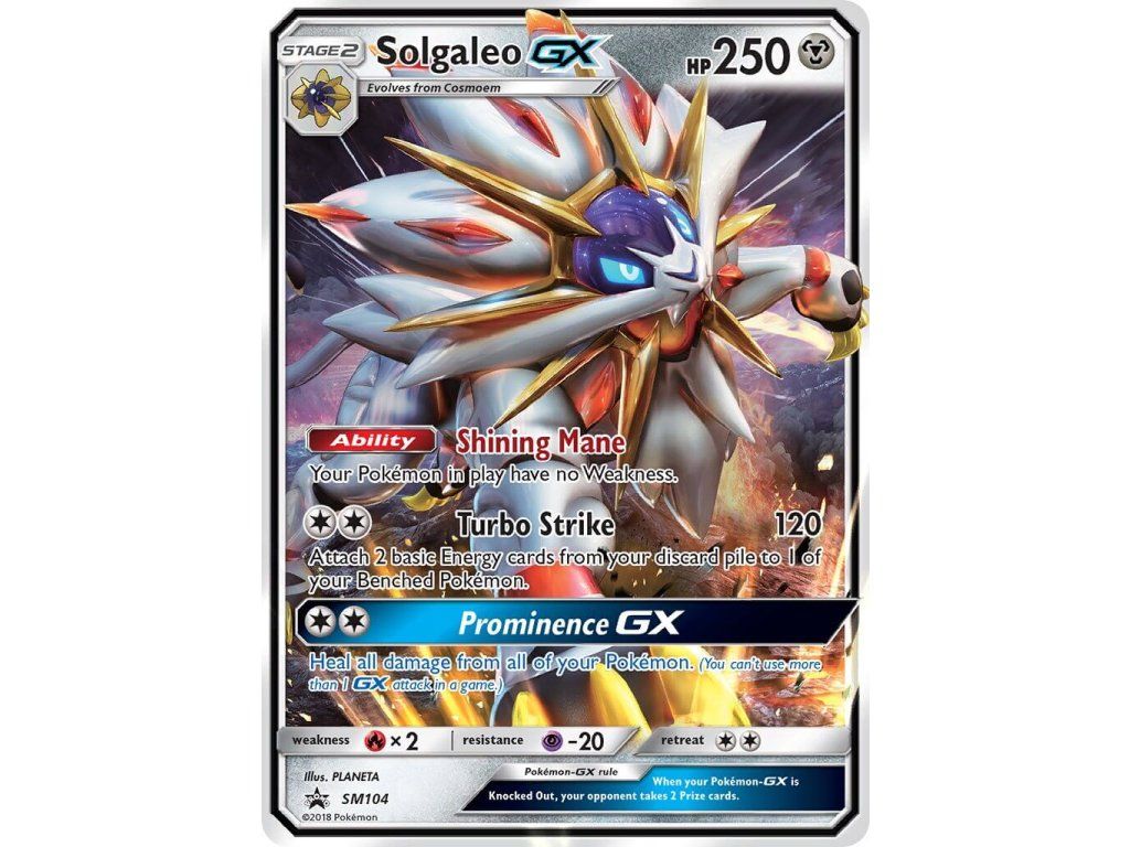 Tato Pokémon TCG kusová karta Solgaleo GX je SM Black Star Promo.