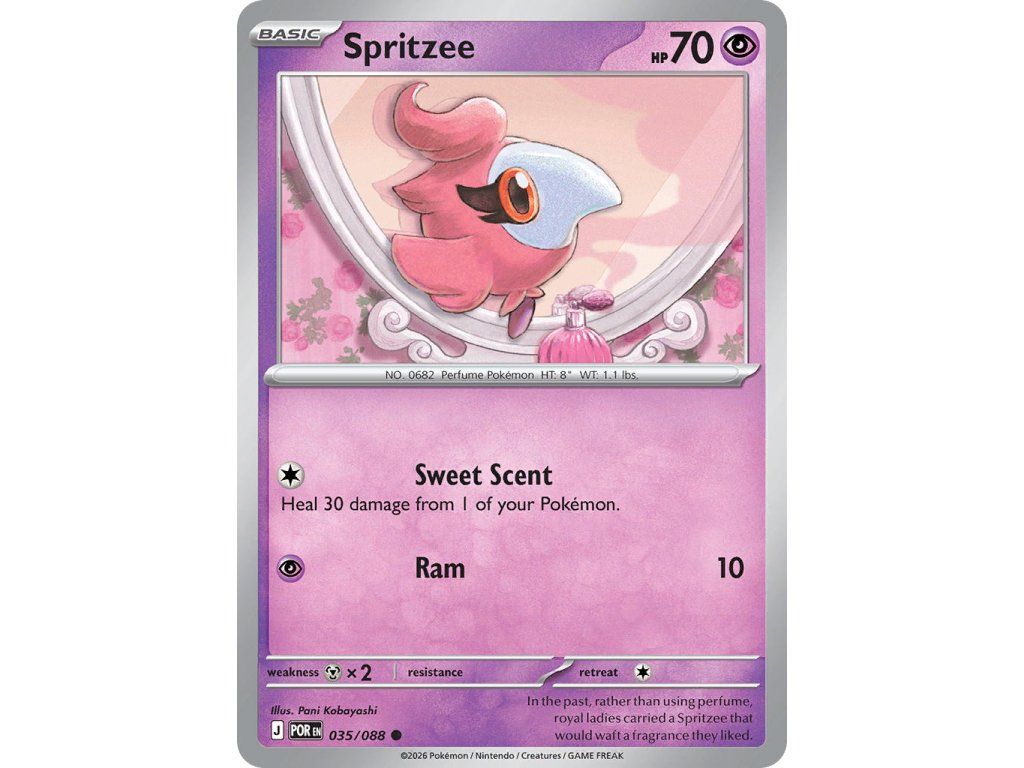 Tato Pokémon TCG kusová karta Spritzee je z edice Perfect Order. Tato karta je Common rarity a má regulační značku J.