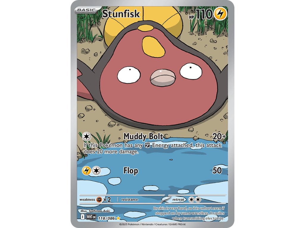Tato Pokémon TCG kusová karta Stunfisk je z edice White Flare. Tato karta je Illustration Rare rarity a má regulační značku I.