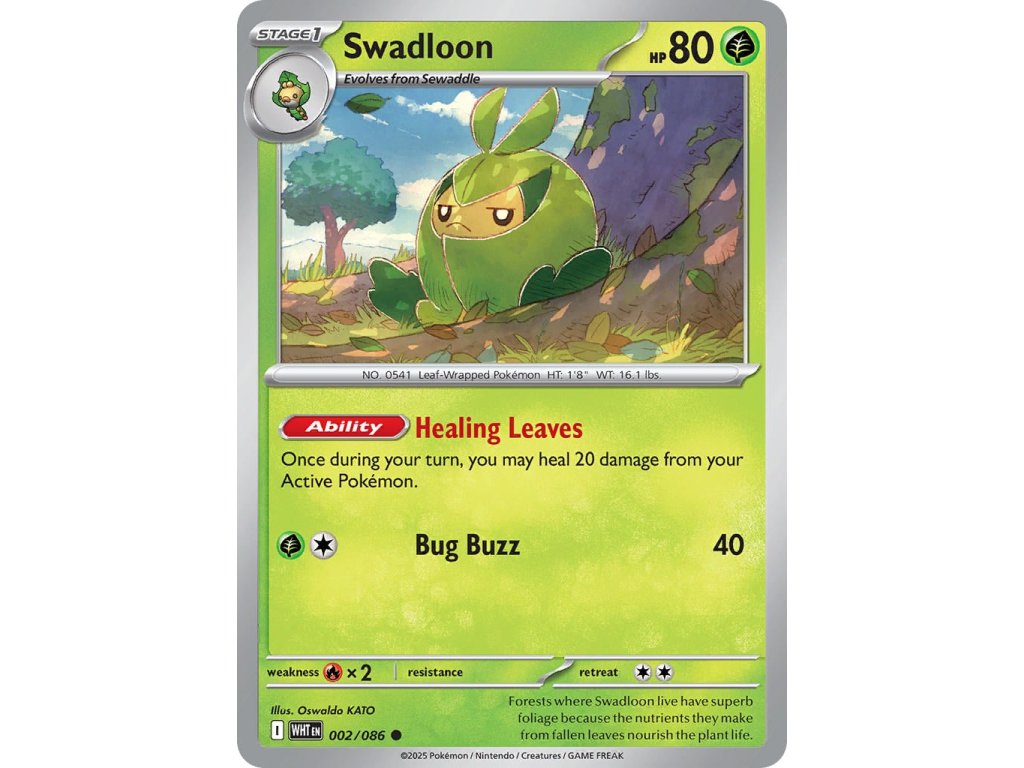 Tato Pokémon TCG kusová karta Swadloon je z edice White Flare. Tato karta je Common rarity a má regulační značku I.