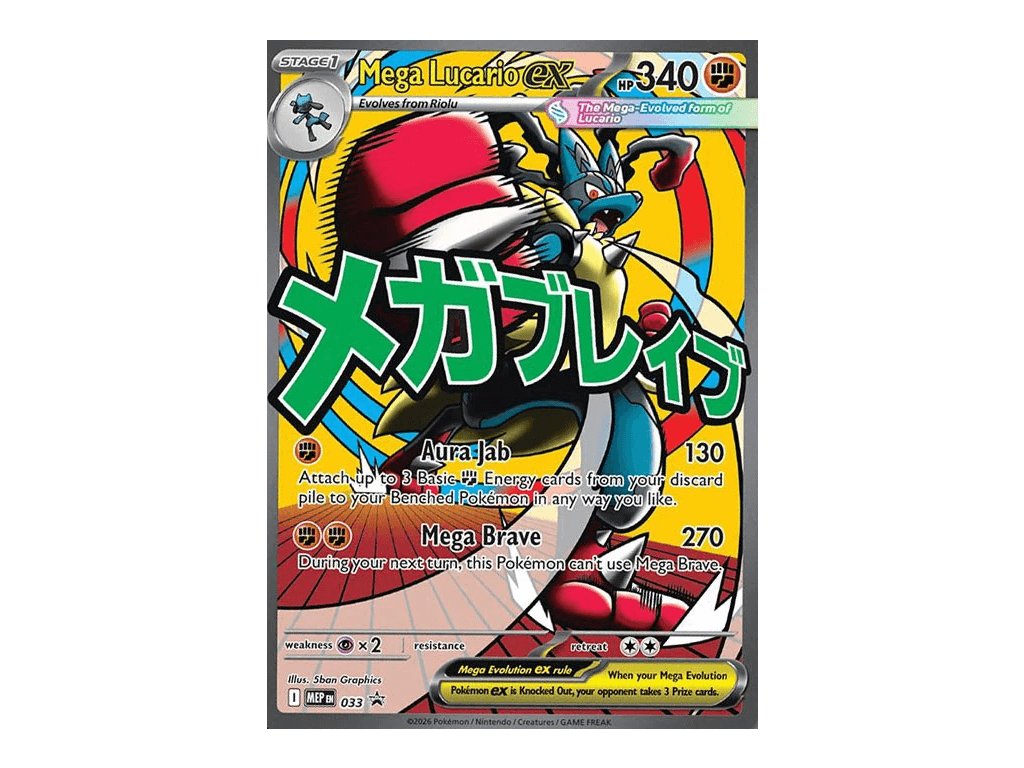 V balení naleznete 10 booster balíčků z edice Ascended Heroes, díky nimž získáte nové Pokémony, trenéry i vzácné karty. Součástí je také velký oboustranný plakát s motivem Mega Lucario ex, který poslouží jako stylový doplněk do každé sběratelské kolekce.