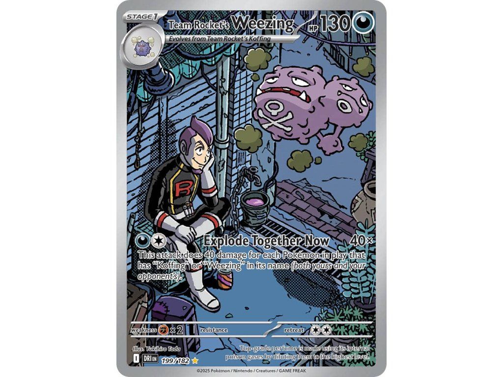 Tato Pokémon TCG kusová karta Team Rocket's Weezing je z edice Destined Rivals. Tato karta je Illustration Rare rarity a má regulační značku I.