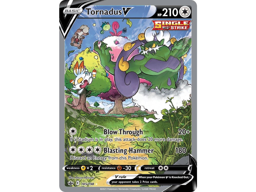 Tato Pokémon TCG kusová karta Tornadus V je z edice Chilling Reign. Tato karta je Special Illustration Rare rarity a má regulační značku E.