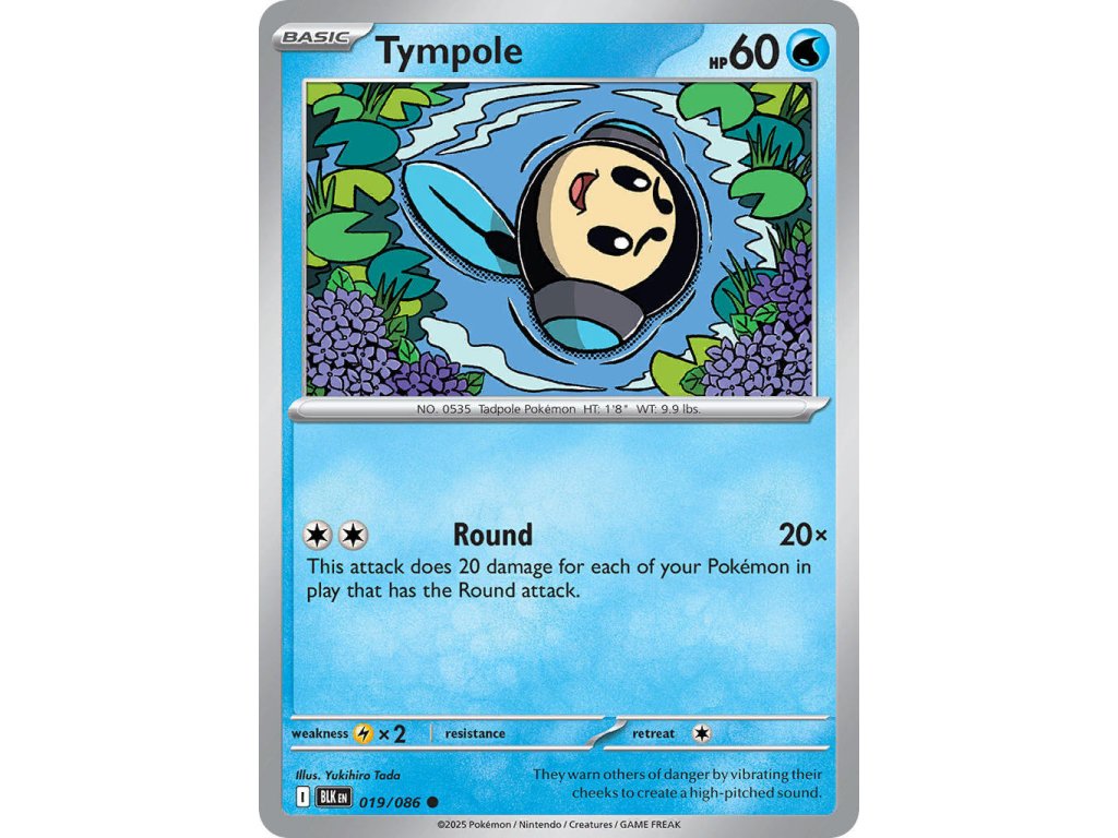 Tato Pokémon TCG kusová karta Tympole je z edice Black Bolt. Tato karta je Common rarity a má regulační značku I.