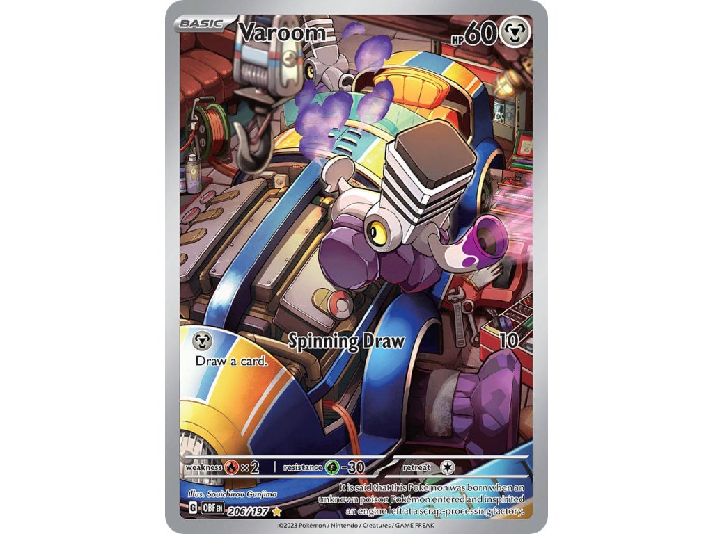Tato Pokémon TCG kusová karta Varoom je z edice Obsidian Flames. Tato karta je Illustration Rare rarity a má regulační značku G.