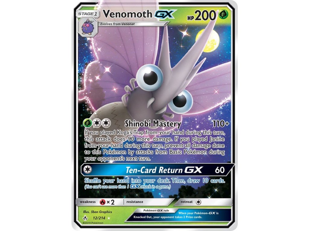 Tato Pokémon TCG kusová karta Venomoth GX je z edice Unbroken Bonds. Tato karta je Ultra Rare rarity.