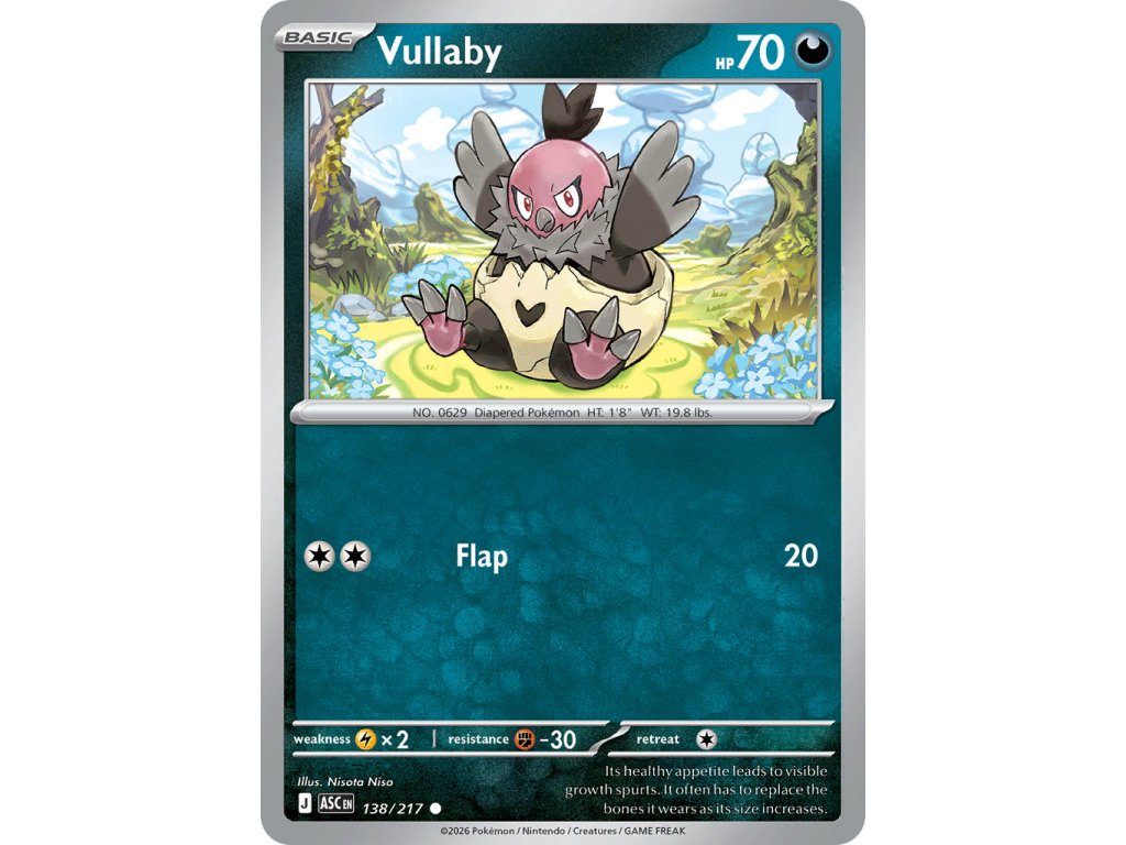 Tato Pokémon TCG kusová karta Vullaby je z edice Ascended Heroes. Tato karta je Common rarity a má regulační značku J.