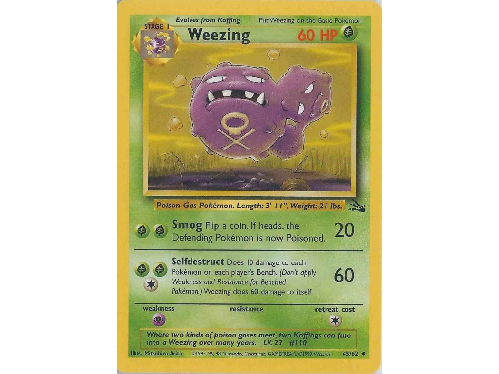 Tato Pokémon TCG kusová karta Weezing je z edice Fossil. Tato karta je Uncommon rarity.