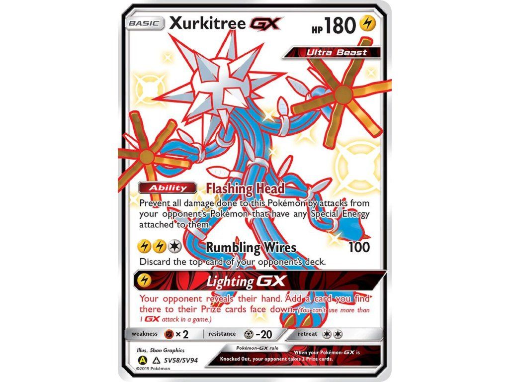 Tato Pokémon TCG kusová karta Xurkitree GX je z edice Hidden Fates. Tato karta je Shiny Ultra Rare rarity.