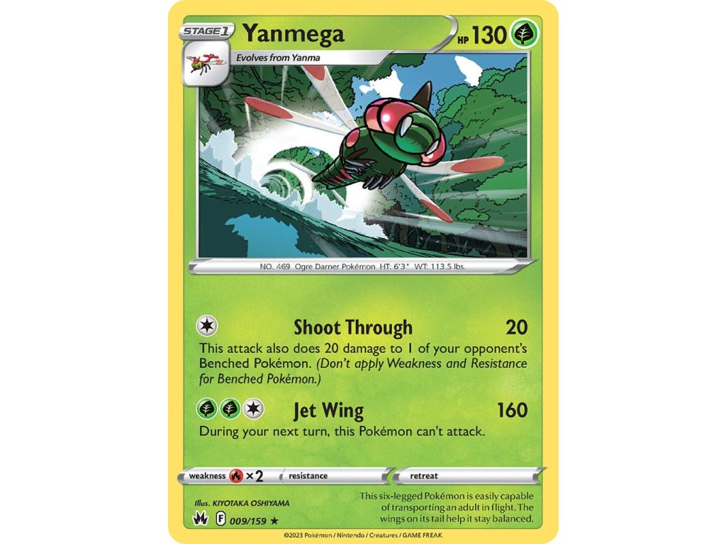 Tato Pokémon TCG kusová karta Yanmega je z edice Crown Zenith. Tato karta je Rare rarity a má regulační značku F.