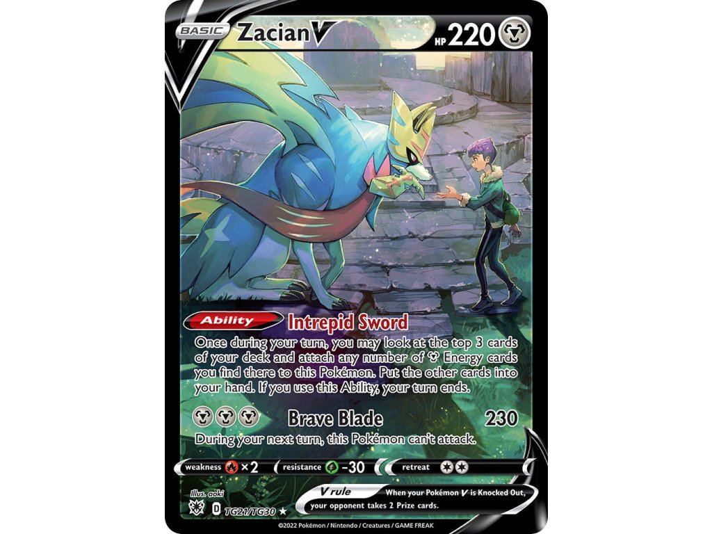 Tato Pokémon TCG kusová karta Zacian V je z edice Astral Radiance. Tato karta je Special Illustration Rare rarity a má regulační značku D.