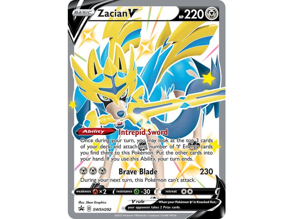 Tato Pokémon TCG kusová karta Zacian V je SWSH Black Star Promo. Tato karta je Promo rarity a má regulační značku D.