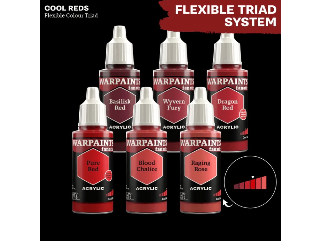 The Warpaints Fanatic: Pure Red je živá červená, která odpovídá Warpaints Air a Colour Primeru se stejným názvem. Je to jeden ze dvou středních tónů z flexibilní barevné triády „Cool Reds“ a její praktický název je „Červená“.
